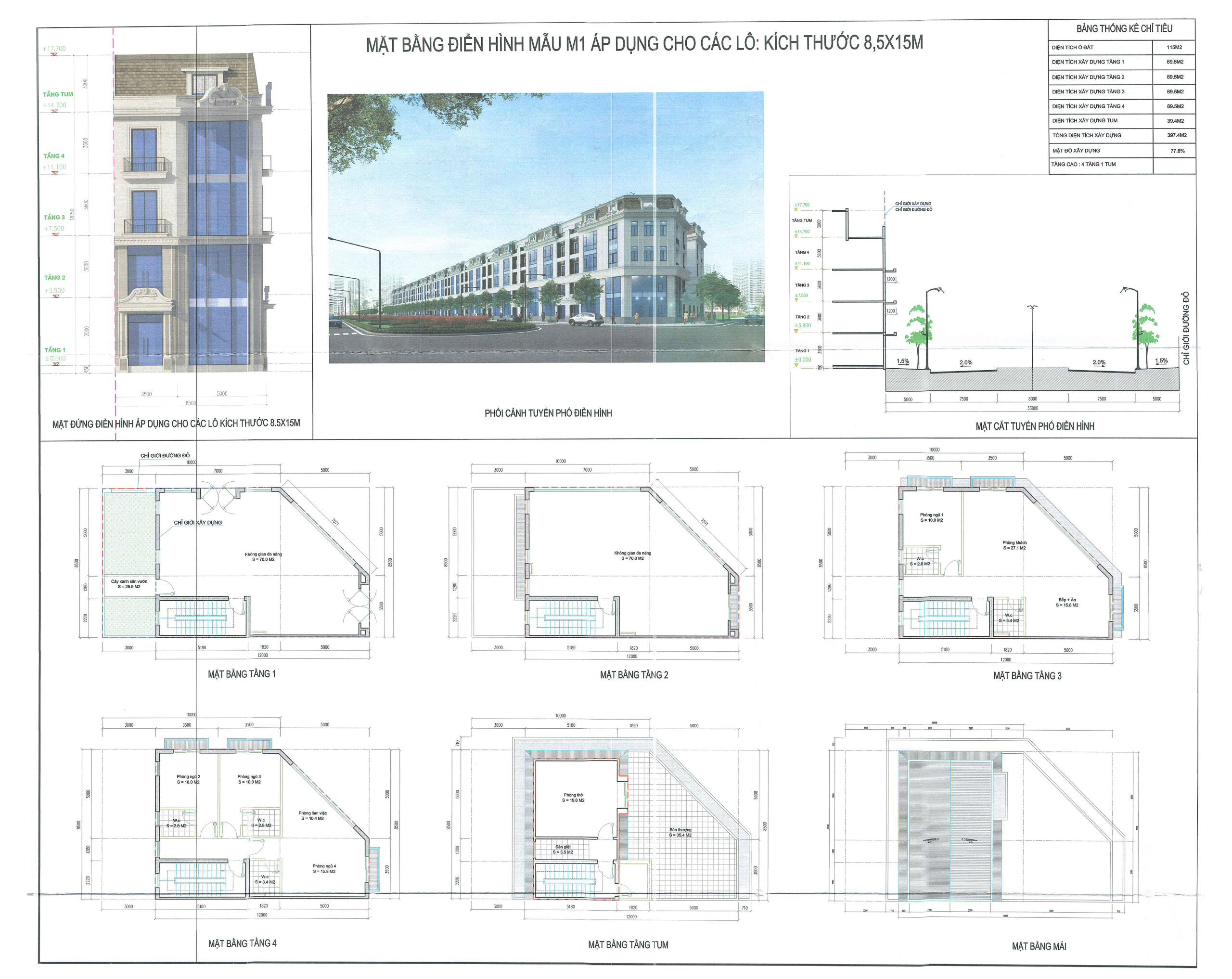 - Thiết kế: 3 tầng 1 tum